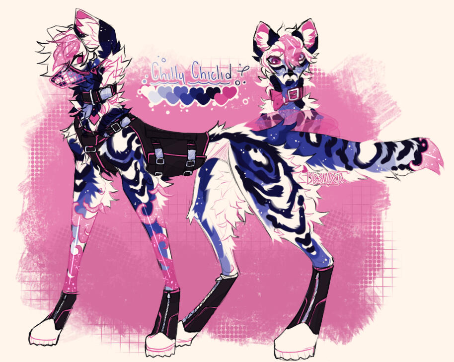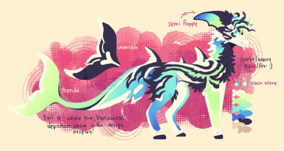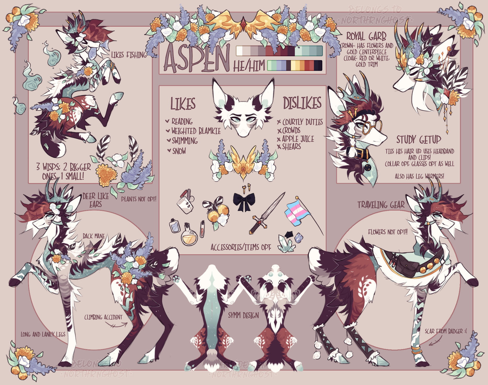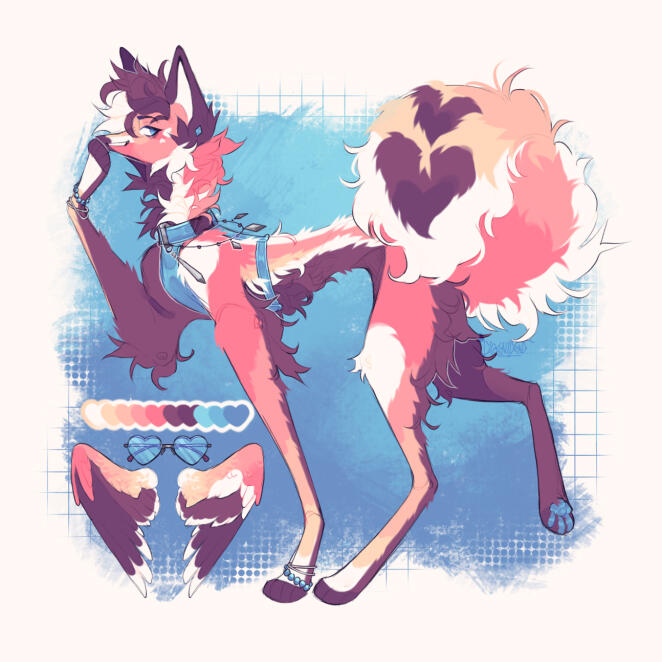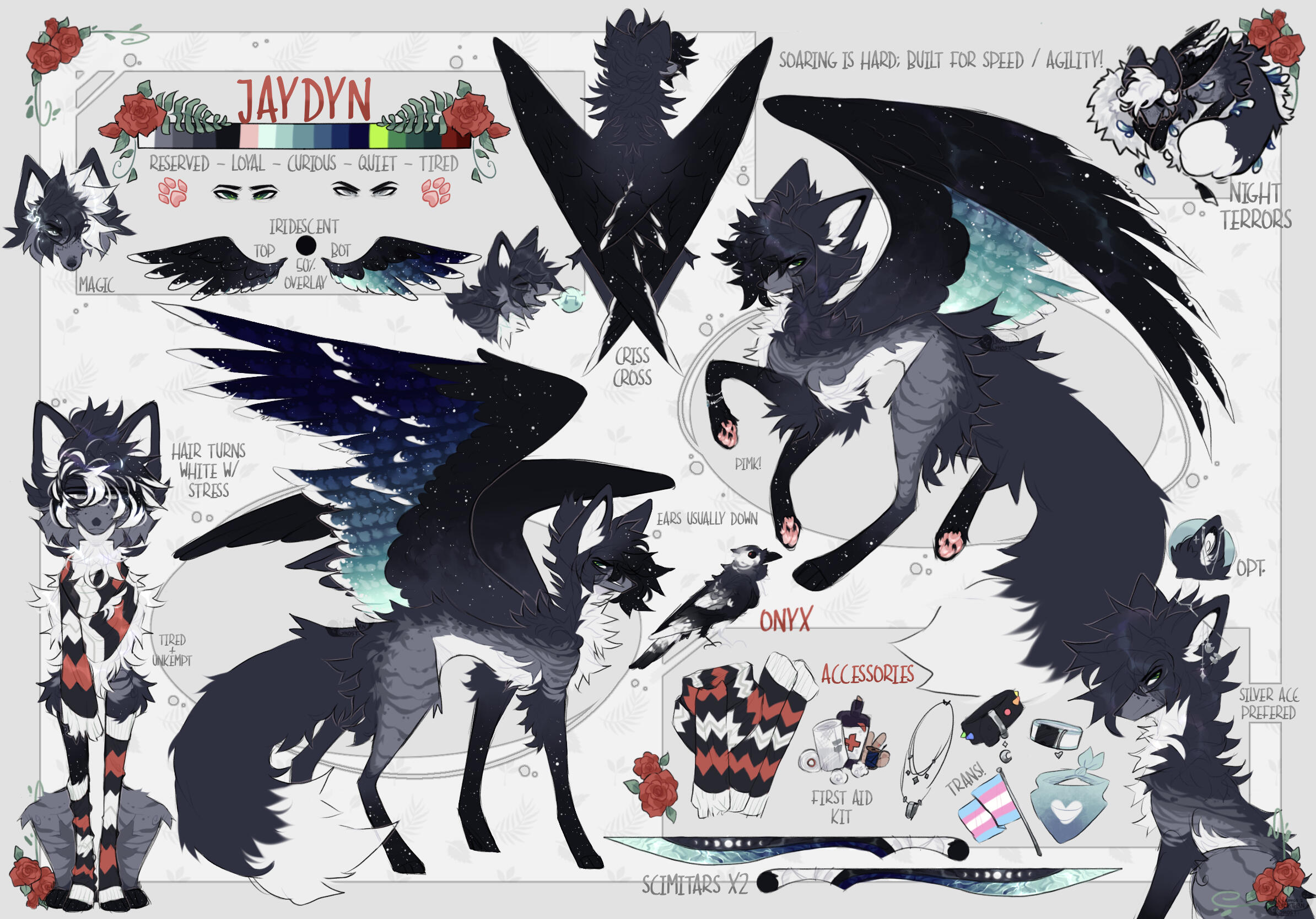 Refs will always come with a pallet, and a name and preferred pronouns. Any non-visible design traits may be noted for clarity.